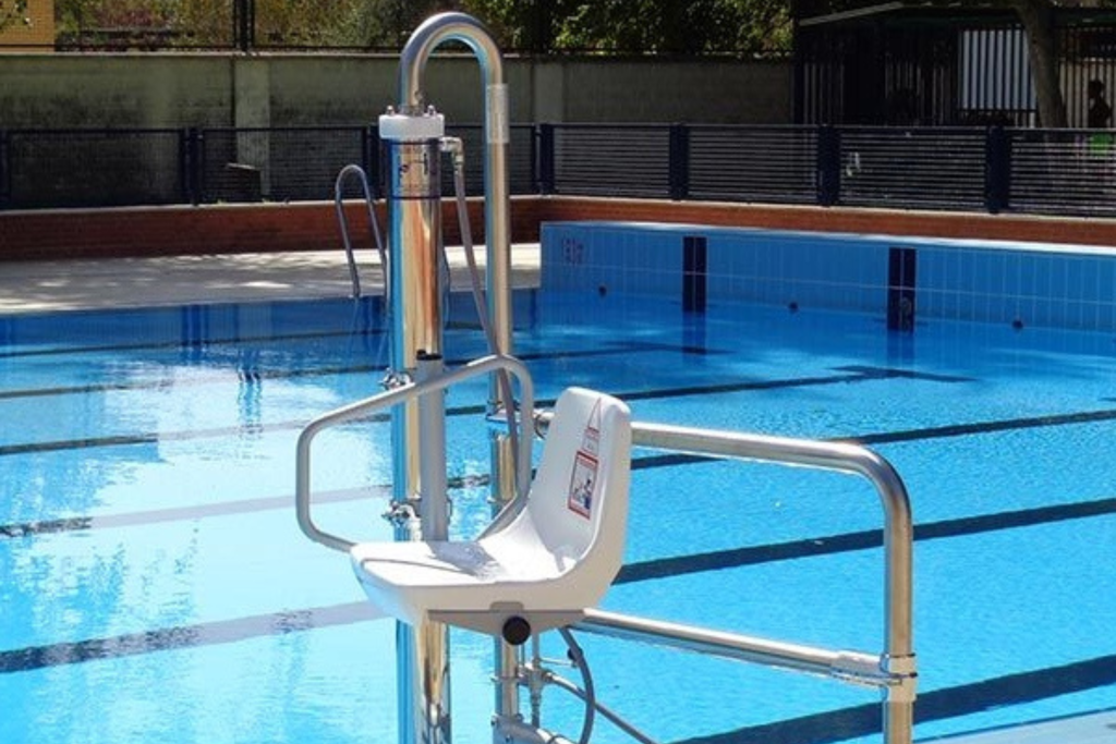 Elevadores de acceso a piscinas para personas con movilidad reducida. Acceso autónomo y seguro al agua en piscinas públicas, hoteles y viviendas privadas.